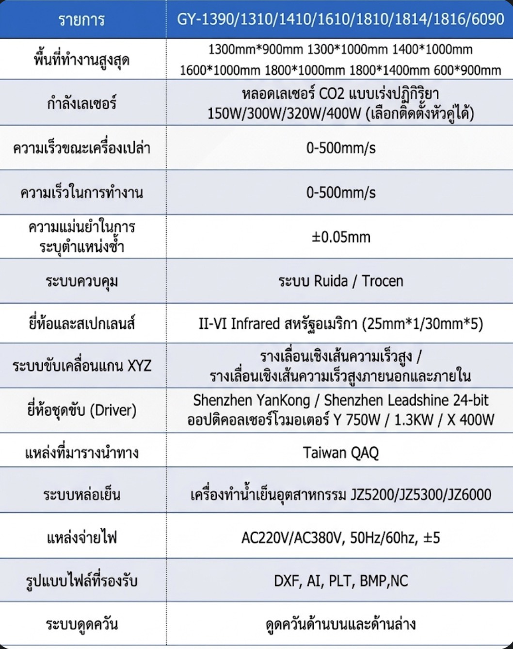 • Working area size: 1300x9000 mm- Can cut acrylic super thick 25 mm- Laser tube lasts more than 10,000 hours